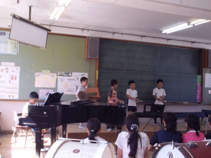 子どもたちがそれぞれ自分たちで選んだ曲を演奏するということで,教科書の曲をより一層完成度の高いものにした児童や,児童会の曲,歌謡曲に挑戦したり,替え歌でクラスの応援ソングにしたりと自由な発想での音楽会となりました。