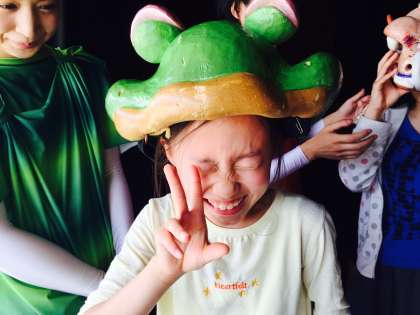 劇中に出てきた役の人のかぶり物をかぶったり,再現してみたりと最後の最後まで楽しみました。