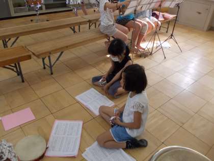 合奏で鈴を担当するようで、同じ担当のお友達と一生懸命練習していました。