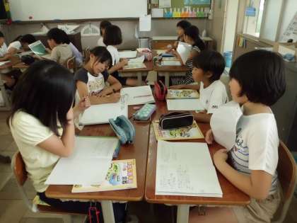 まず一人一人が考えをノートに書き,グループで話し合いました。