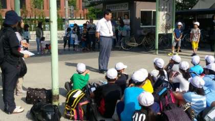 おうちの方に見送られて,元気に出発です!