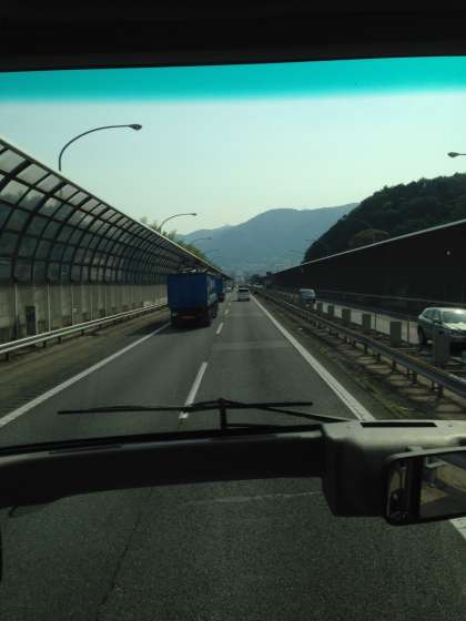 名神高速道路に入りました。バスの中で早速合唱が始まりました。