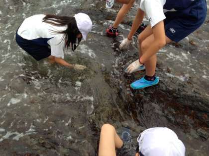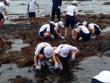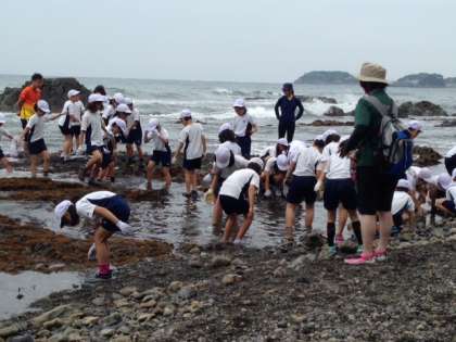 波が強くなってきましたが、子どもたちは、歓声を上げて、磯観察を楽しんでいます。