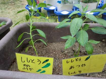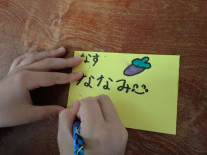自分の手で植えた苗をこれからも大事にお世話していくために,ネームカードを作りました。どんなふうに生長していくか楽しみですね。