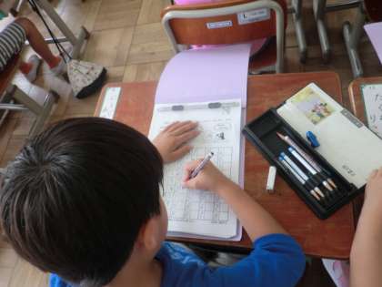 学校生活にも慣れ,休み時間には汗びっしょりになるまで遊び,授業がはじまるとさっと切り替えて取り組むことができるようになってきています。