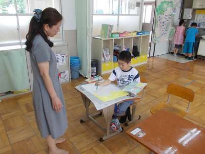 今日は教頭先生が見に来てくださり、パレットや絵の具の使い方を教えてくださいました。パレットを片手に繊細な筆づかいをする様子はとてもかっこよかったです!