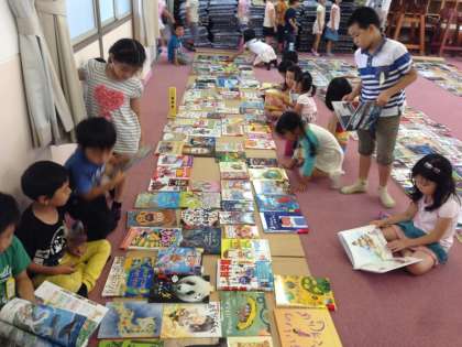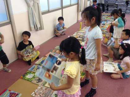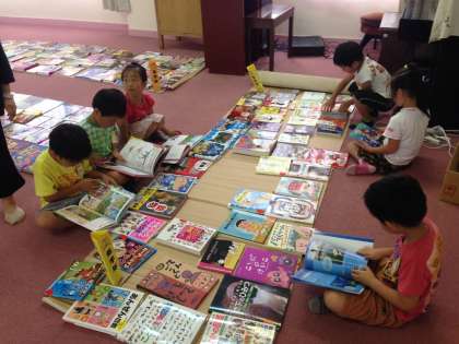 多目的室に並べられたたくさんの絵本。