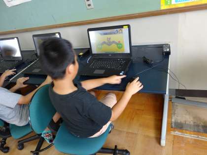 ローマ字打ちを最終目標に今日は,1回目ということでマウス操作の基本をゲームを使って学びました。ゲーム感覚で覚えられるので習得がとても早いですね。