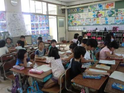 いよいよ,来週は校区たんけんに行き,お店の方たちにインタビューをします。今日は,グループに分かれて,お店の方に聞きたいことを考えました。聞きたいことがたくさんあって,プリントに入りきらない子たちもいました。当日が楽しみですね。