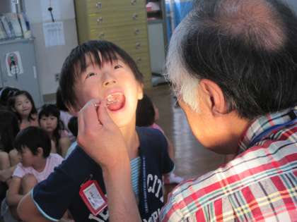 大きな口をあけて、虫歯や歯の病気がないかを診てもらいました。