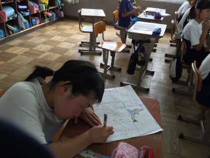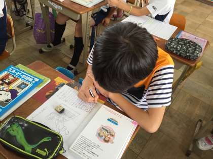 朝の読書の時間に,友達が紹介した本を読んでいる子もいます。