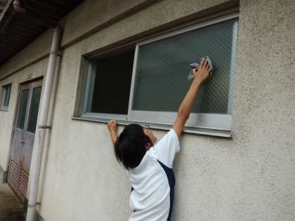 雨が降っていましたが,ほうき隊とぞうきん隊に分かれて掃除をしました。