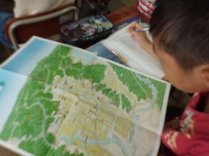 京都市の地図を広げて,京都市にはどのような場所があるのか調べました。
