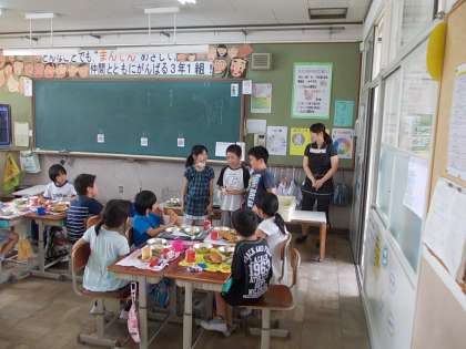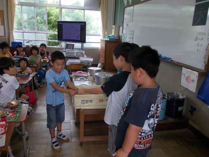 給食中でしたがどのクラスも温かく迎えてくれて、練習したあいさつも上手に言えることができました!