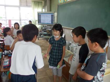そこでクイズに答えてくれた全員にしおりのプレゼントを渡しに行きました。