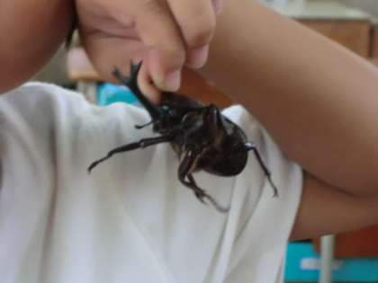 週末に家族と色々なところへ行って採ってきた生き物を,学校に持ってきてくれています。カブトムシにザリガニにトカゲ…。子どもたちは,生き物の面白い動きを興味深く観察しています。