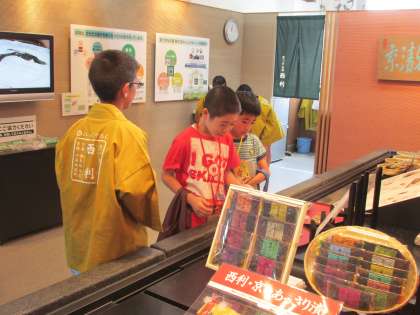 働いて得たお給料で,ショッピングも楽しみました。お家の人のお土産にすると,じっくり選んでいました。