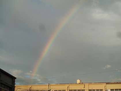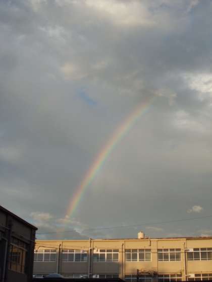 夕焼け空に綺麗な虹が出ていました。子どもたちも見ていたかな〜??