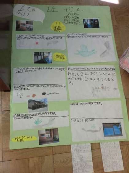 生活科で行ったお店たんけんのインタビューで分かったことを新聞にまとめました。どのグループも,とってもすてきな新聞になりました。みんなの前で発表するのが楽しみですね。