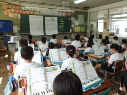 今日は,『ゆかいなもっきん』という曲を練習しました。リコーダーパートだけではなく,鍵盤ハーモニカで演奏するパートもある楽しい曲で,子どもたちも気にいっている様子です。