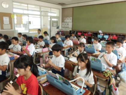 夏休みの宿題で頑張ったリコーダー練習の成果はいかがでしょう!そんなことを言わんばかりに子どもたちはリコーダーを嬉しそうに演奏しています。