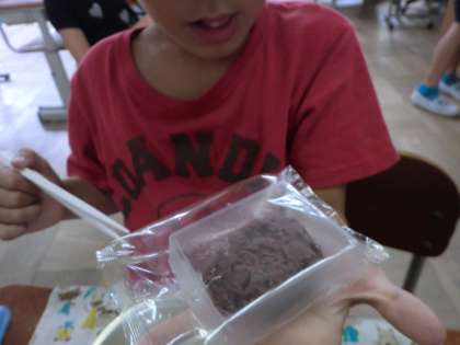 今日の給食におはぎが出ました!給食で食べるのは初めてでした。あんこはひんやりしていて,中はもちもちしていて,小ぶりでとても美味しかったです。子どもたちも笑顔で食べていました。また,給食に出たらいいですね。