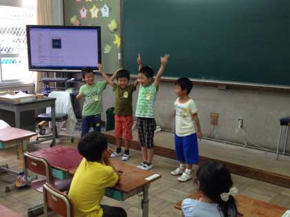 今日の1コマは「おわらい係」。人気芸人のネタをみんなの前で楽しくやってくれました。テレビで見てよく覚えているようでノリノリで、観客のみんなは拍手喝采でした。