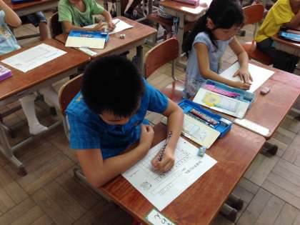 のびっこタイムでは「百マス計算」に今日から挑戦しています。計算スピードをあげることが目的です。タイムを毎回測って1秒でも速くできるように頑張ってほしいと思います。