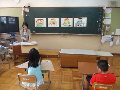 紙芝居や大きなイラストでわかりやすく教えていただきました。