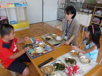 先日、栄養士の先生にわかばで食育指導をしていただきました。