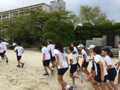 友達が走っているときは,声をかけ合いながら応援し,お互いを高め合っています。