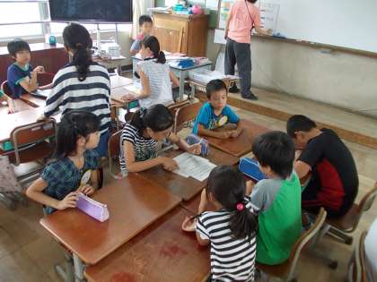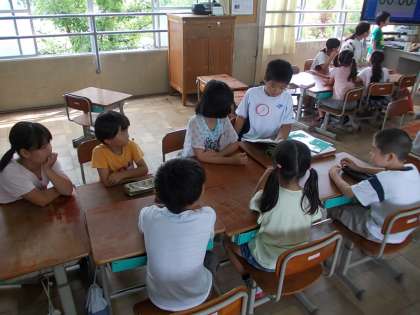 先日、その遠足に向けてスマイル集会がありました。班の6年生から遠足について説明を聞いたり、係を決めたり、班の目標を決めたりしました。