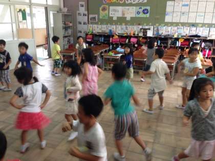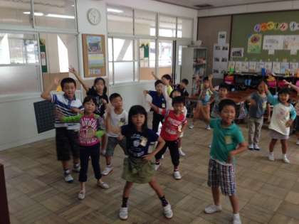 体育の時間や休み時間にTVに映った先生を真似しながら楽しく踊っています。