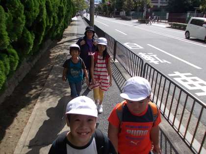 今日はスマイル遠足がありました。縦割り班で活動する遠足ですが、行き帰りはわかばの仲間で一緒に移動します。