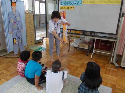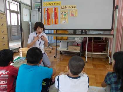 計測の前にはいつも保健室の先生が体や心の授業をしてくださいます。