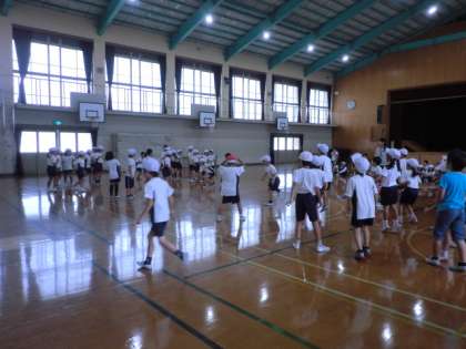 2年3組に新しいお友達が増えました。同じ2年生として,早くなかよくなるために,ドッジボール交流会をしました。今回は,組も入り混じってゲームをしました。普段あまりお話できない友達とも触れ合えて,楽しそうでした。