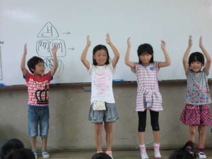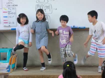 音楽「朝のリズム」では,手や足やひざでリズムをとって楽しく歌っています。今日は,グループでオリジナルのたたきかたを考えて,発表しました。全身でリズムをとって楽しく歌っていました。