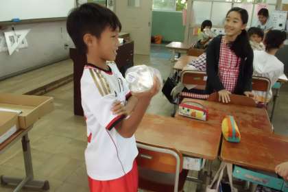 自分のうでを曲げたりのばしたりしながら,うでの内側と外側をさわり,筋肉のかたさとふくらみなどがどのように変わるか調べました。