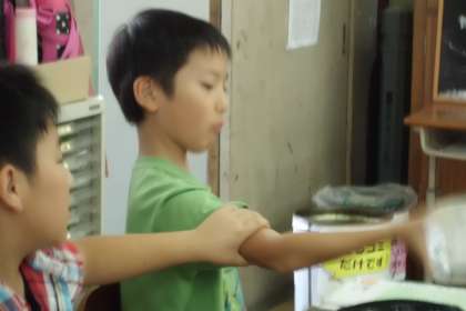 どのような仕組みで,うでを曲げたりのばしたりしているかを,うでが動く時の様子を観察して調べました。