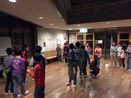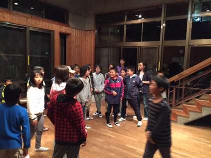 1クラスずつ天体観測所にいき,残りのクラスは明日の「キャンプファイヤー」の練習をしています。