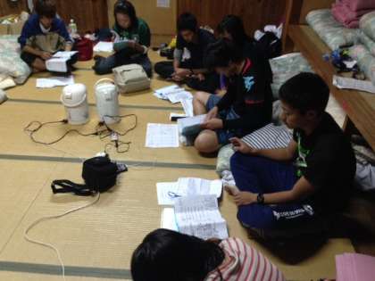 二日目の深夜,子どもたちが就寝してから,教職員と学生ボランティアが「反省会」を行っています。