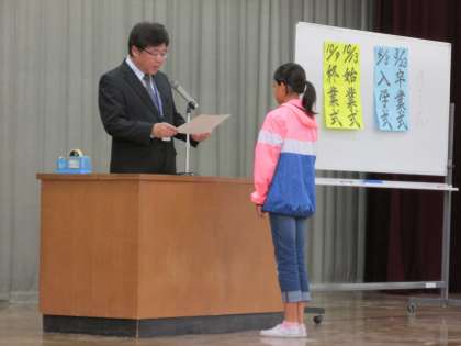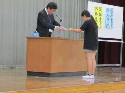前期始業式の後,表彰式を行いました。「スポーツの秋」「芸術の秋」「読書の秋」です。