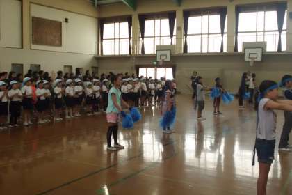 中間休みに,体育館で青組の応援練習がありました。