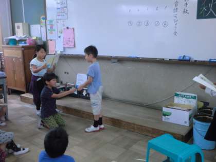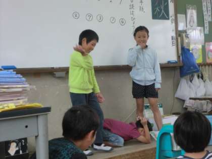 国語「お手紙」では,好きな場面を選んで,音読発表をしました。かたつむりが出てくる場面では,かたつむりになりきってゆっくり言ったり,落ち込んだがまくんを表すためにうつむいて暗い声で言ったり,工夫をしていました。