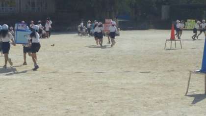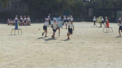 2年生は,団体競技「ワッショイ☆やさいみこし」をがんばりました。