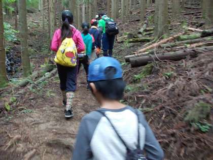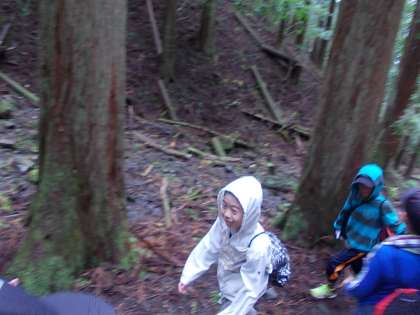 3日目は朝から山登りでした。川を何度も渡ったり、ロープをつかまないと登れないような坂を登ったりと大変な道のりでしたが、みんなに遅れることなく無事に登り切ることができました。