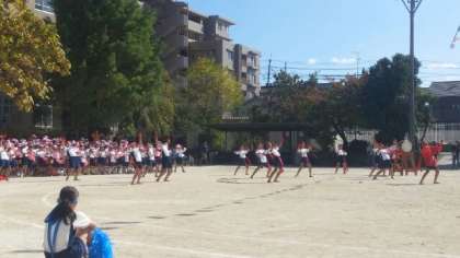 どの組も趣向を凝らして,一生懸命応援しています。