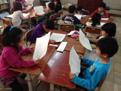 それぞれ印象的な場面は違うので、書いた後にグループで回し読みをしました。友だちの感想文を自分のと比べながら読むようにしました。