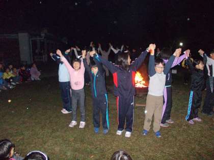 3日目の夜のキャンプファイヤーの様子です。それぞれ練習してきた出し物を無事に披露することができました。ゲームや寸劇やダンスなど色々な出し物があり、とても楽しく過ごすことができました!