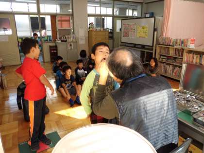 前回の検診から治療している人や1年生の時からむし歯ゼロの人は褒めてもらいました。